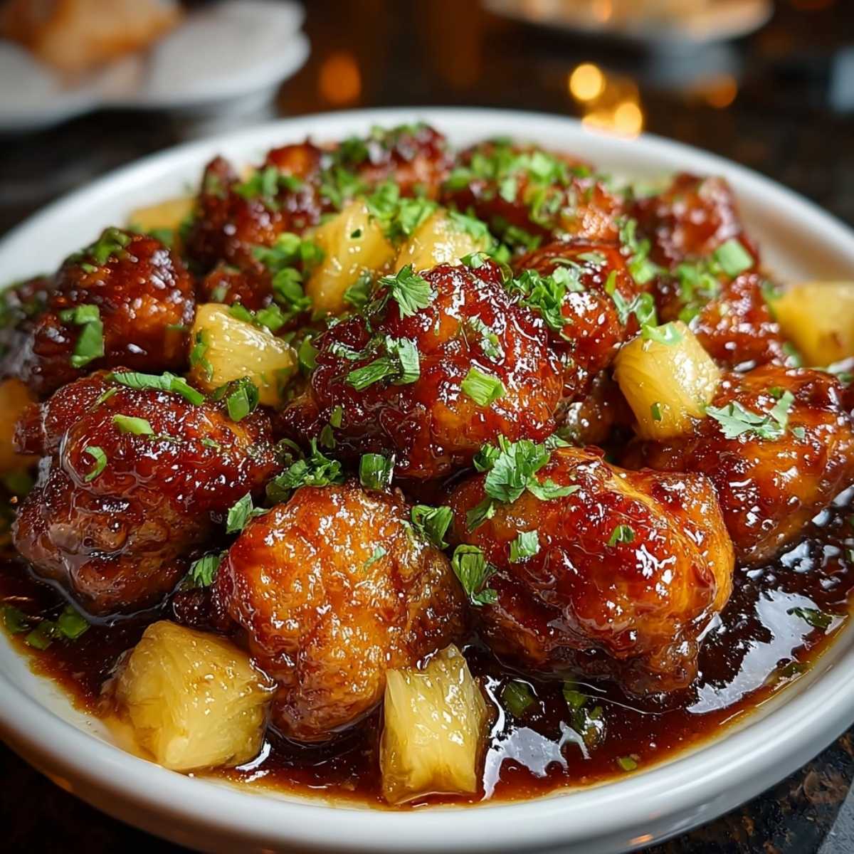 - Reheating: Warm in a skillet over medium-low heat with a splash of water or pineapple juice to loosen the sauce.
