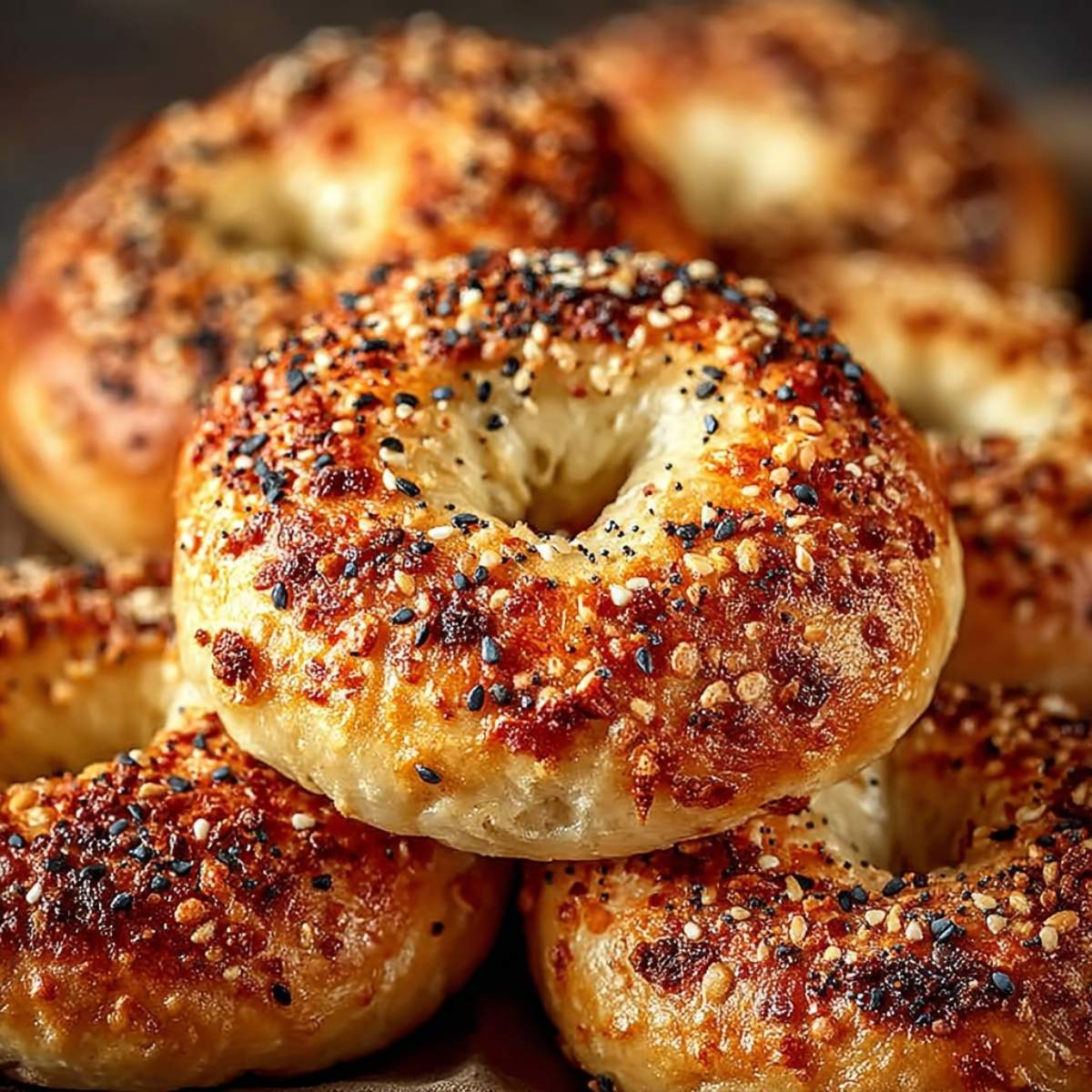 Egg wash creates a golden, shiny top. Brushing the bagels with beaten egg before baking gives them that classic bakery-style shine and helps toppings stick.